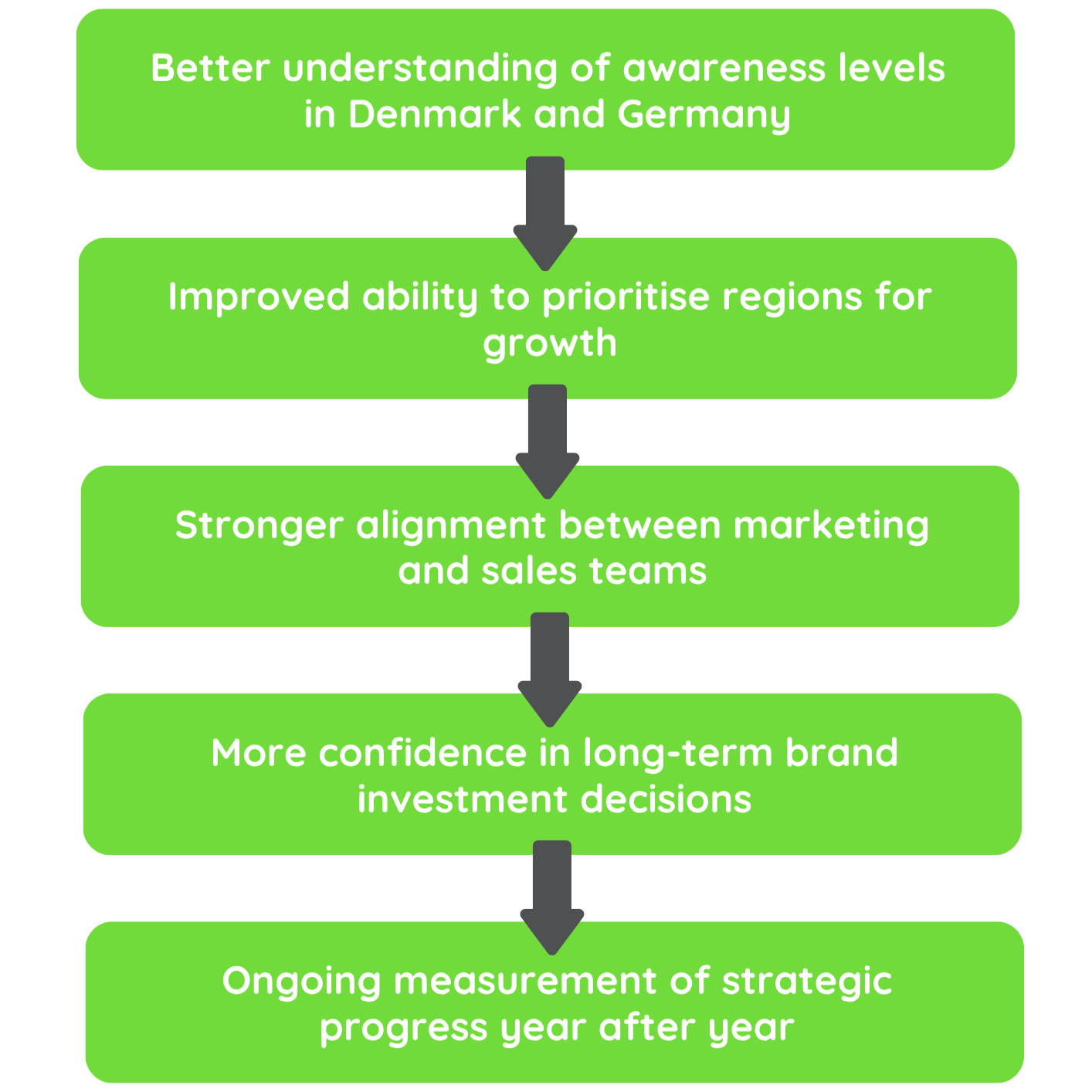 To support this transition, the marketing team needed a consistent way to measure whether investments in awareness and branding were creating tangible impact in priority markets.